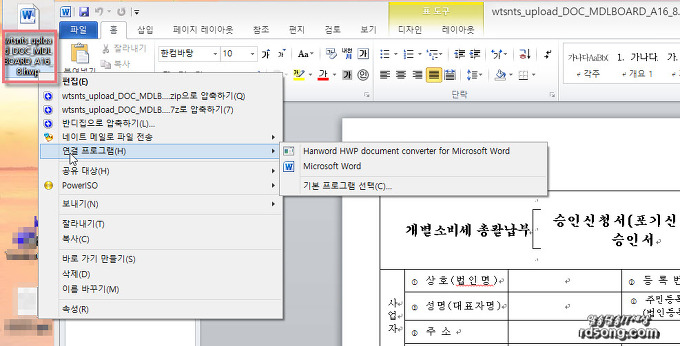 윈도우8.1에서 hwp한글문서를 쉽게 Ms word Docx로 자동변환하여 ms workd로 열어 준다