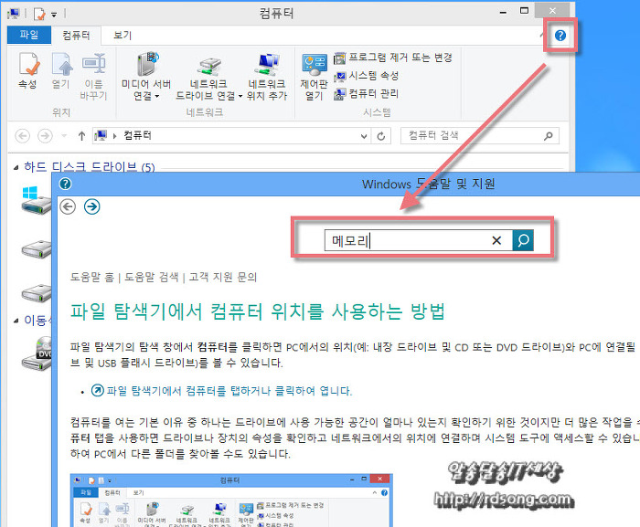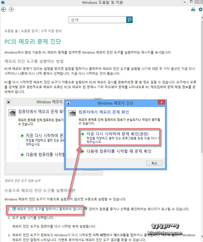 방법 1:윈도우8 도움말 기능을 이용하여 PC 메모리 진단 실행하기