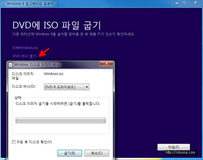 윈도우8 pro 미디어를 만들어 설치-DVD롬에 버닝& ISO파일저장