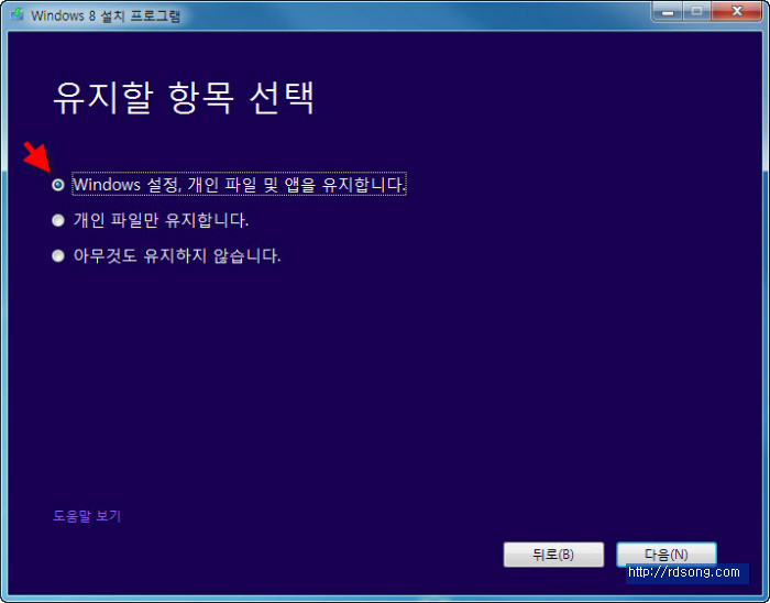 아래, 맨 첫번째 윈도우설정과 개인파일 앱유지로 선택을 했으며, 기존에 설치된 것을 최대한 사용하기 위함이며 ,깔금하게 모조리 날려버리고 설치하려면 맨마지막을 선택하면 되겠네요