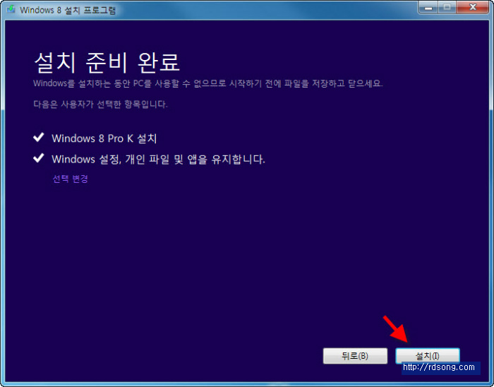 아래 미디어를 만들어 설치를 해본것입니다 2번째것으로 선택, 만일 지금설치를 했다가 혹시 문제가 생겨서 오류가 나기라도 하는 날에는 …골치아프게 되므로 미디어를 만들어 설치 진행