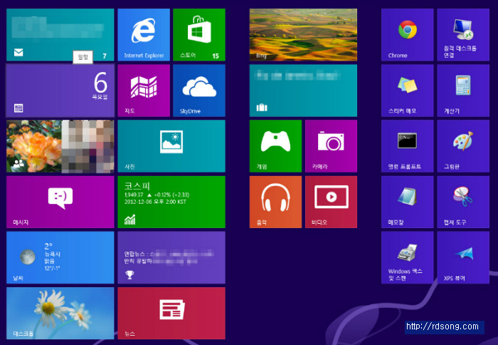 예전에 윈8 릴리즈 프리뷰 버젼에서 설치하여 조금맛을 보긴 했지만 , 정식버젼을 구입하여 이번에 다시 설치를 했습니다