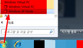 시작- 모든프로그램-windows virtual PC 를 찾자