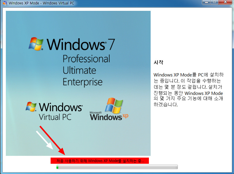 그런 다음 windows XP mode 를 클릭하여 설치를 마무리를 한다