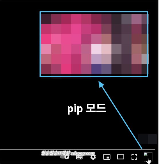크롬 확장 프로그램 pip 사용 하려면 , 아래 유튜브 동영상 우측 하단에 아이콘 클릭 하면 됩니다. 웹브라우저 에따라서 있을수도 있고 없을 수도 있습니다.