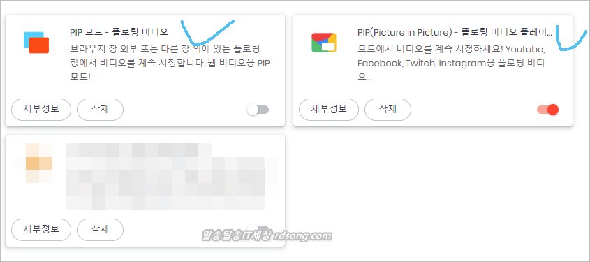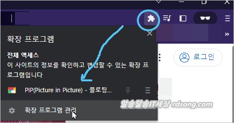 크롬 확장 프로그램 pip 플로팅 플레이어 실행