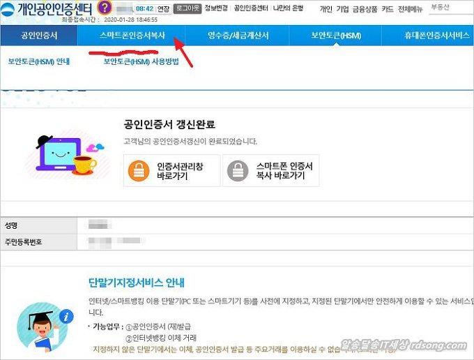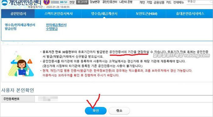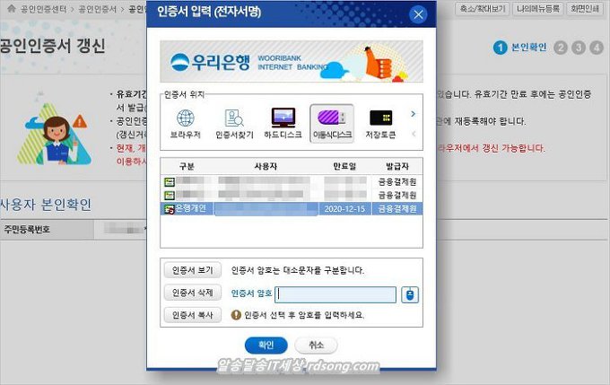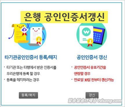 공인인증서 처음 최초로 발급 은행에서 갱신
