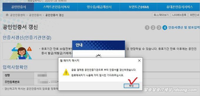 공인인증서 갱신 할 사용자 본인 확인을 합니다.
