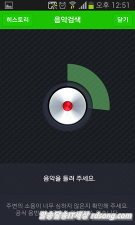 소리로 음악 찾기 할때 아래 샤쟘 어플 이용해 보세요