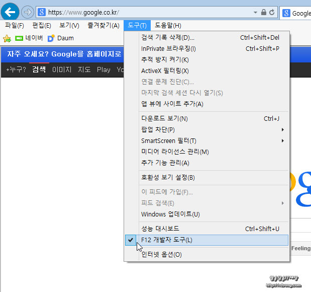 ▲익스플로러 11 – F12 개발자 도구