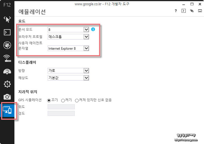 그나마 다행인게 이렇게라도 되니..허허! 개발자모드 F12 키를 누르면 아래처럼 에뮬레이션 모드가 올라옵니다