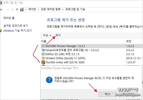 인터넷 뱅킹후 설치되는 보안 프로그램 제거 윈도우10 PC 최적화