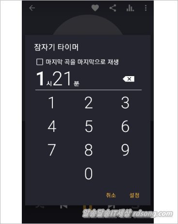타이머 시간을 설정하면 그 시간 동안 재생하고 자동으로 뮤직플레이어 꺼집니다.