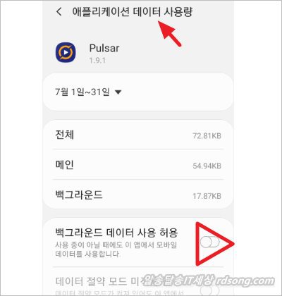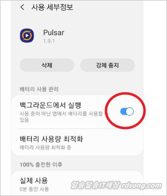 pulsar 뮤직 플레이어 : 백그라운드 데이터 사용 허용 : 차단