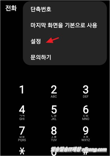 전화 걸려 올때 발신자 이름 읽어주기 설정 해 볼까요? 삼성 전화 앱 열고 키패드의 우측 상단 점3개 터치