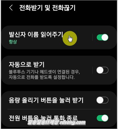 전화 올때 휴대전화 발신자 수신 읽어 주기 – 삼성 전화 앱 설정