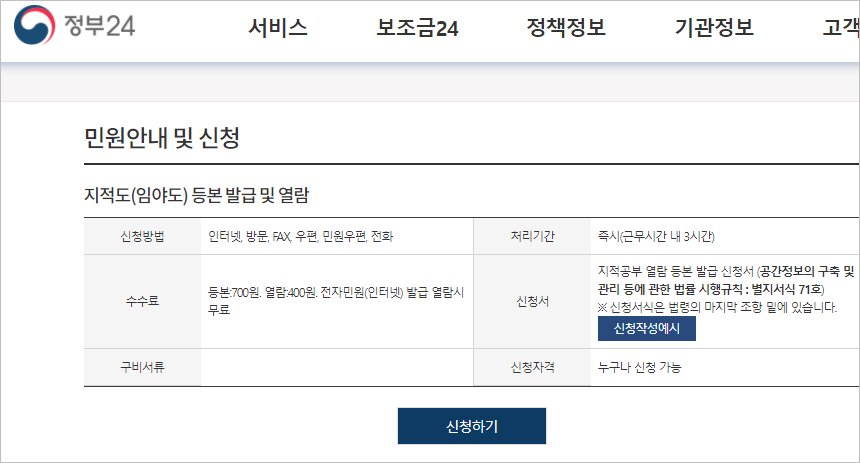 지적도 무료 열람 : 정부 24 홈페이지 지적도 발급( 임야도 ) 등본 발급