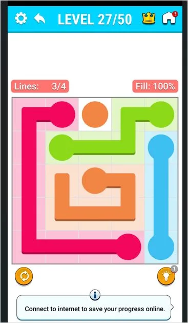같은 색 끼리 선으로 연결 해 주면 됩니다. 정말 간단한 게임 입니다. 재미도 있고 시간 때울때에도 좋아요 안에 바툭판을 모두 선으로 채워져 있어야 합니다.