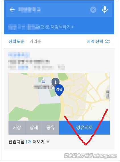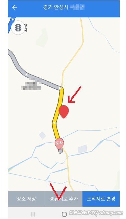 경유지 추가 아래 그림에서 보는 것처럼 적색 아이콘 경유지 인데 경유지로 추가 터치 하면 된다.