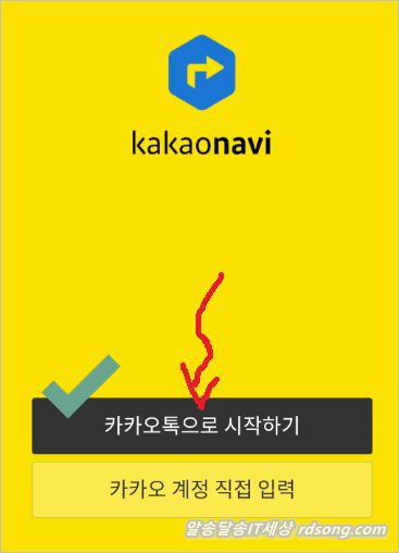 카카오내비 사용하려면, 카카오톡 시작 하거나 카카오 계정 입력 하여 사용을 해야 한다.
