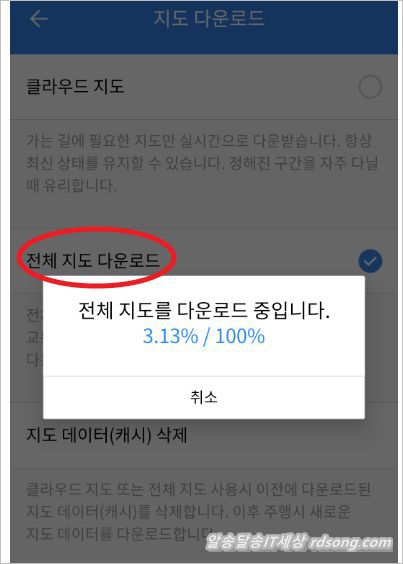 가는 길에 필요한 지도 실시간 으로 다운 받는다 라고.