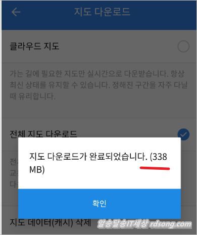 카카오내비 지도 파일 크기 338 MB 정도 된다.