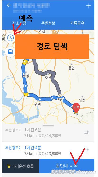 카카오내비 경로 탐색 , 목적지 경로 탐색 테스트 삼아 시도 해 보니, 예측 기능도 있고 그런대로 쓸만하다.
