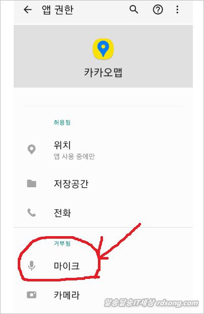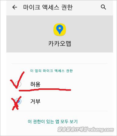 카카오맵 위치 권한 마이크 권한 등을 허용 해 줘야 합니다. 카카오맵 앱을 길게 터치 하면 > 앱정보 에서 쉽게 카카오맵 권한 추가 제거 가능 합니다.