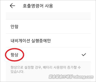 호출명령어 사용 : 항상 으로 바꾸면 마이크 터치 하지 않아도 음성인식 됩니다. 항상으로 바꾸어 쓰면 될지 싶습니다.