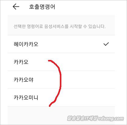 호출명령어 : 음성인식 말할 때 어떤 말로 호출 할지 선택