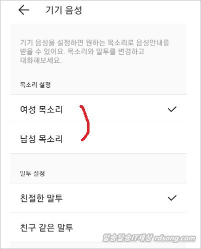 기기음성 : 남성 목소리 / 여성 목소리 변경 가능