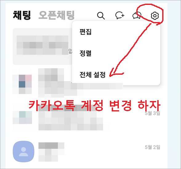 카카오톡 계정 변경 할수 있게 만들어 놔야 하는 거 아녀? 이거!