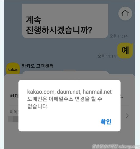 kakao.com daum.net hanmail.net 도메인 이메일 주소 변경 할수 없습니다. 라고 뜨는 군요