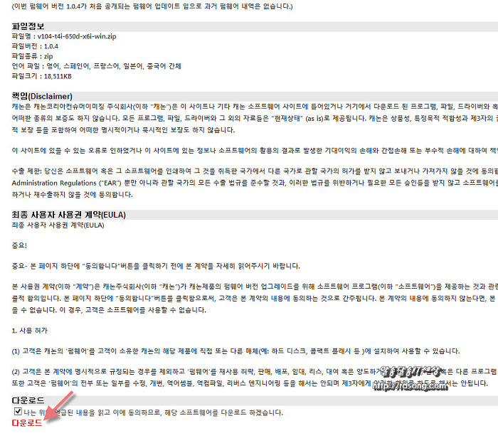 캐논 EOS650D 펌웨어 1.0.4 다운로드 하기