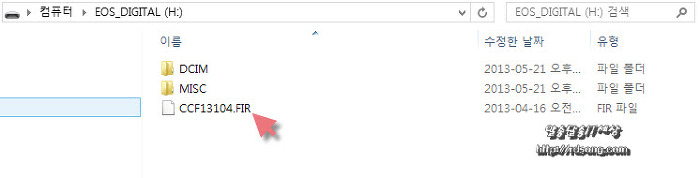 2.펌웨어 파일 ccf13104.Fir 1.0.4 버젼 파일을 카메라의 SD카드에 복사 한다