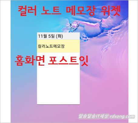 스마트폰 바탕화면, 홈화면 컬러노트 메모장에 뜨게 하여 쉽게 쓸수 있습니다.