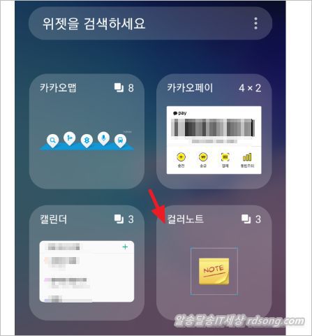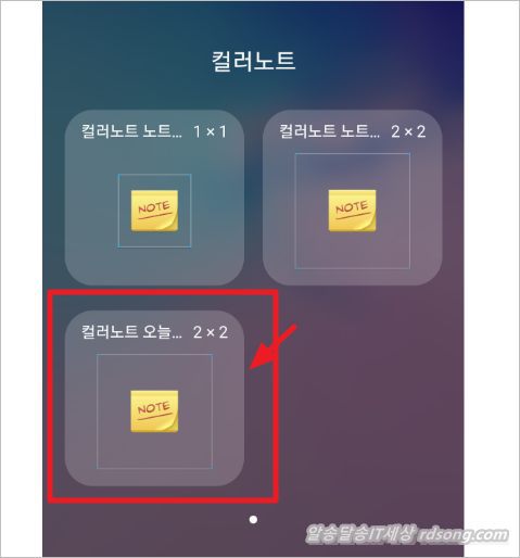 그중에 컬러노트 위젯 찾으면 되며 기본적으로 3가지 형태를 제공합니다.