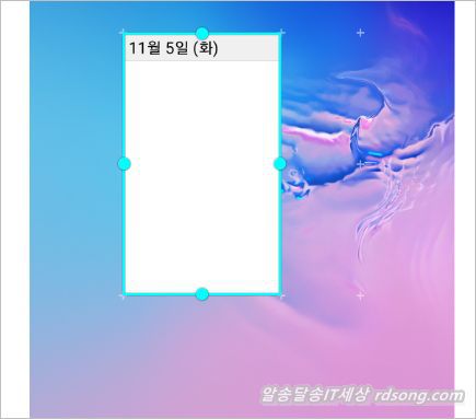 컬러노트 메모 위젯을 길게 터치하여 홈화면에 끌어다 놓습니다.