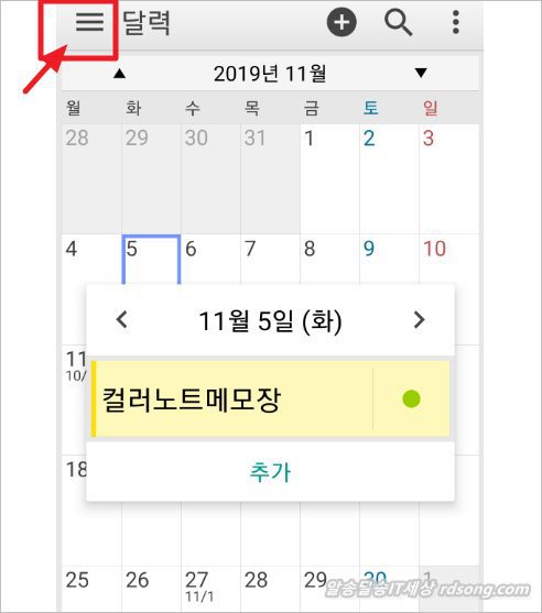 컬러노트 메모장 앱을 터치하면 달력 뜨게, 노트 뜨게 하려면?