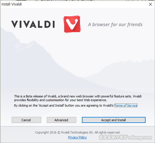 vivaldi 1.0.403.24 버젼으로 현재 베타버젼이 최신 버젼입니다 정식버젼으로 오픈을 해도 될만한데 아직도 베타네요