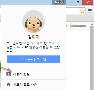 크롬에서 추가된 크롬사용자로 전환 ▲