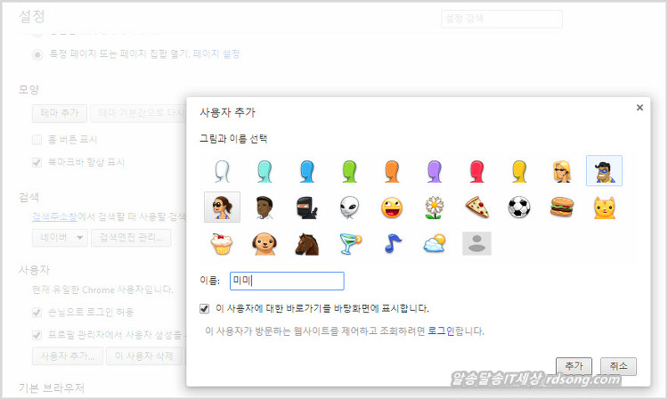 원하는 사용자그림과 크롬 사용자 이름을 변경해도 되고 그냥 사용해도 됩니다