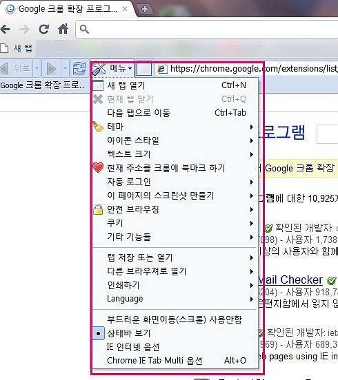 ▲ 크롬 확장프로그램 : 크롬 IE tab 멀티