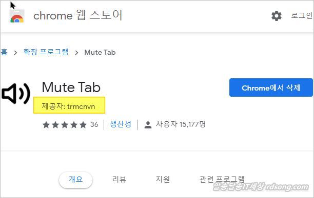 크롬 탭 음소거 소리 mute tab 확장프로그램 설치 방법