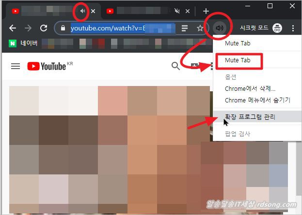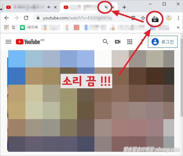 그런데 크롬 뮤트 탭 mute tab 확장프로그램 설치하면 크롬 탭 소리 끄기/켜기 가능합니다.
