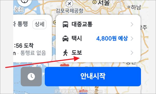 화면하단 보면, 손가락 드레그 하여 화면을 우측으로 가보면 [ 티맵 도보 ]  찾을 수 있습니다.