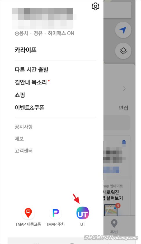 티맵 설정 하단에 아이콘 있습니다. 맨 우측 UT 앱이게 바로 우버 택시 , 티맵 택시 아이콘 입니다. 아래에 티맵 택시 TAXI 라고 써 놓던지, 아는 사람만 알겠지만.