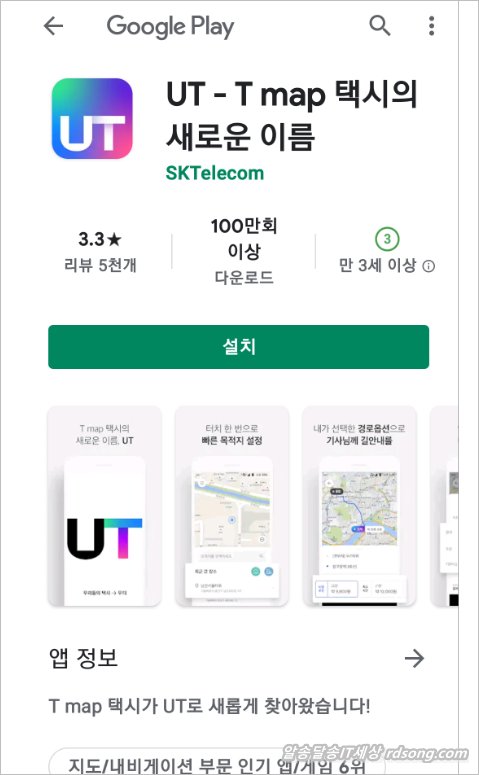 UT 앱 설치 = 티맵 택시 우티택시 설치