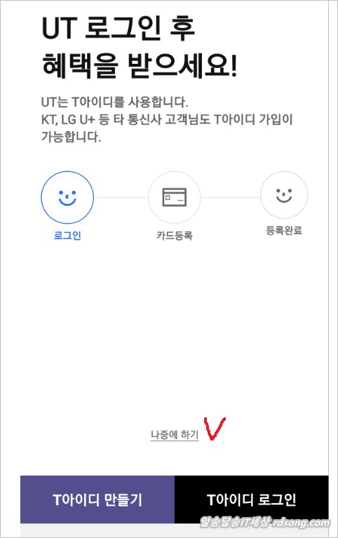 ut 앱 스마트폰에 깔고 로그인 하면 혜택도 있는거 같은데 , 일단 나중에 로그인 하기로 하고 그냥 로그인 하지 않고 사용해도 됩니다.