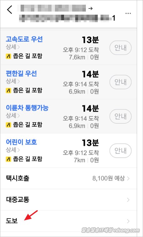티맵 이용하여 도보 경로 안내 기능 있습니다. 주로 자전거 타고 다닐 때 활용 하고 있는데 쓸만 합니다.